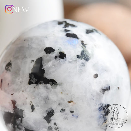 售罄印度白月光石球黑碧璽共生