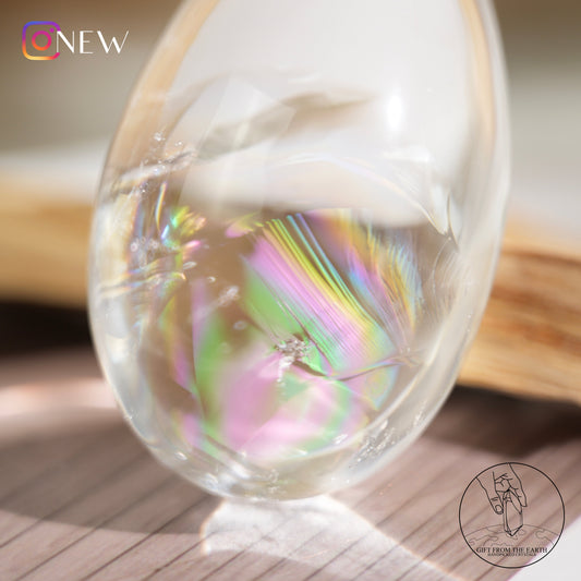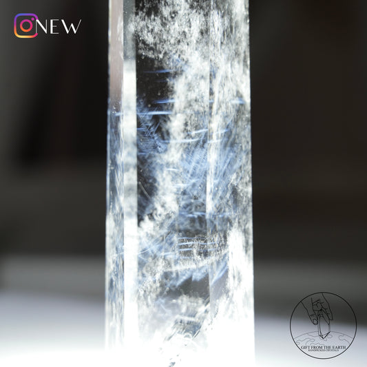 半打磨藍針晶中晶白水晶柱