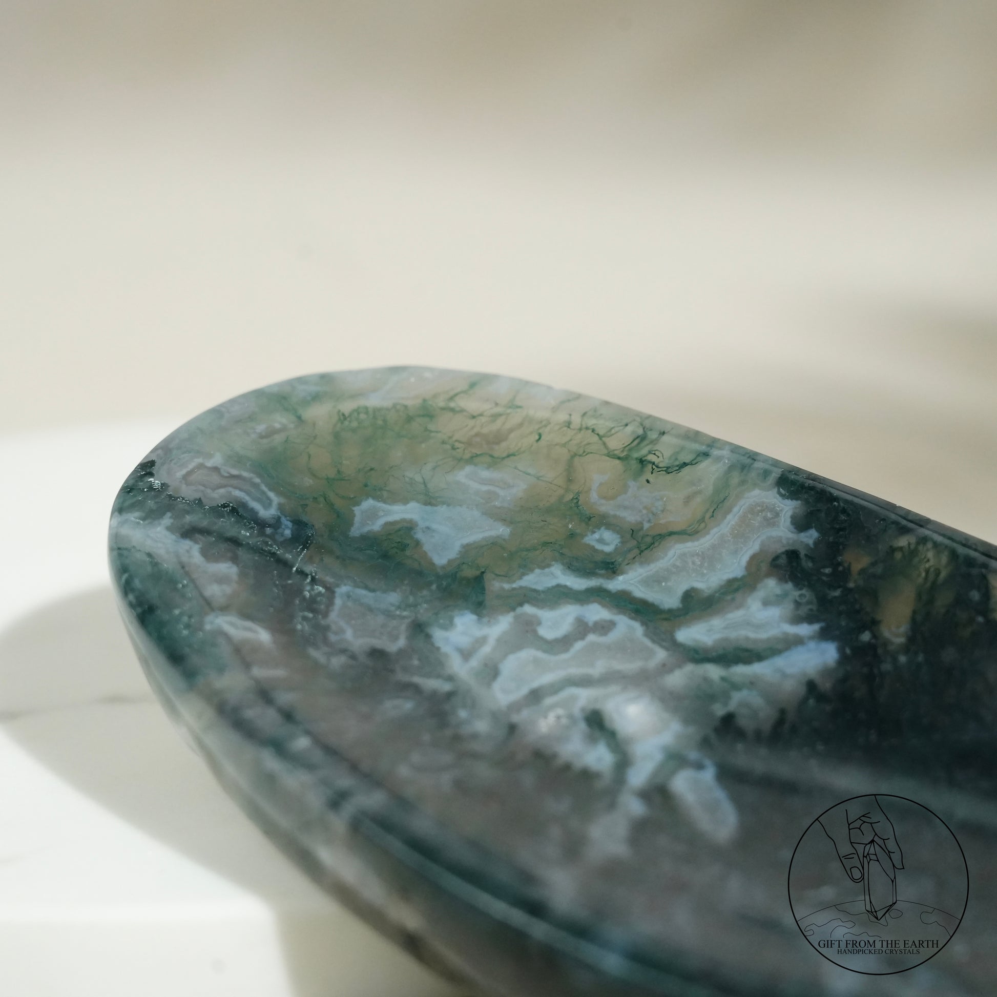 Double-terminated moss agate