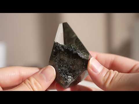 Half-polished multi-layered red-green phantom quartz point