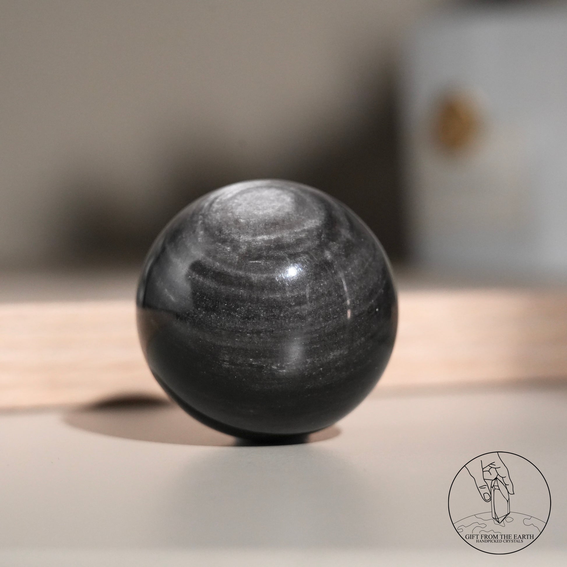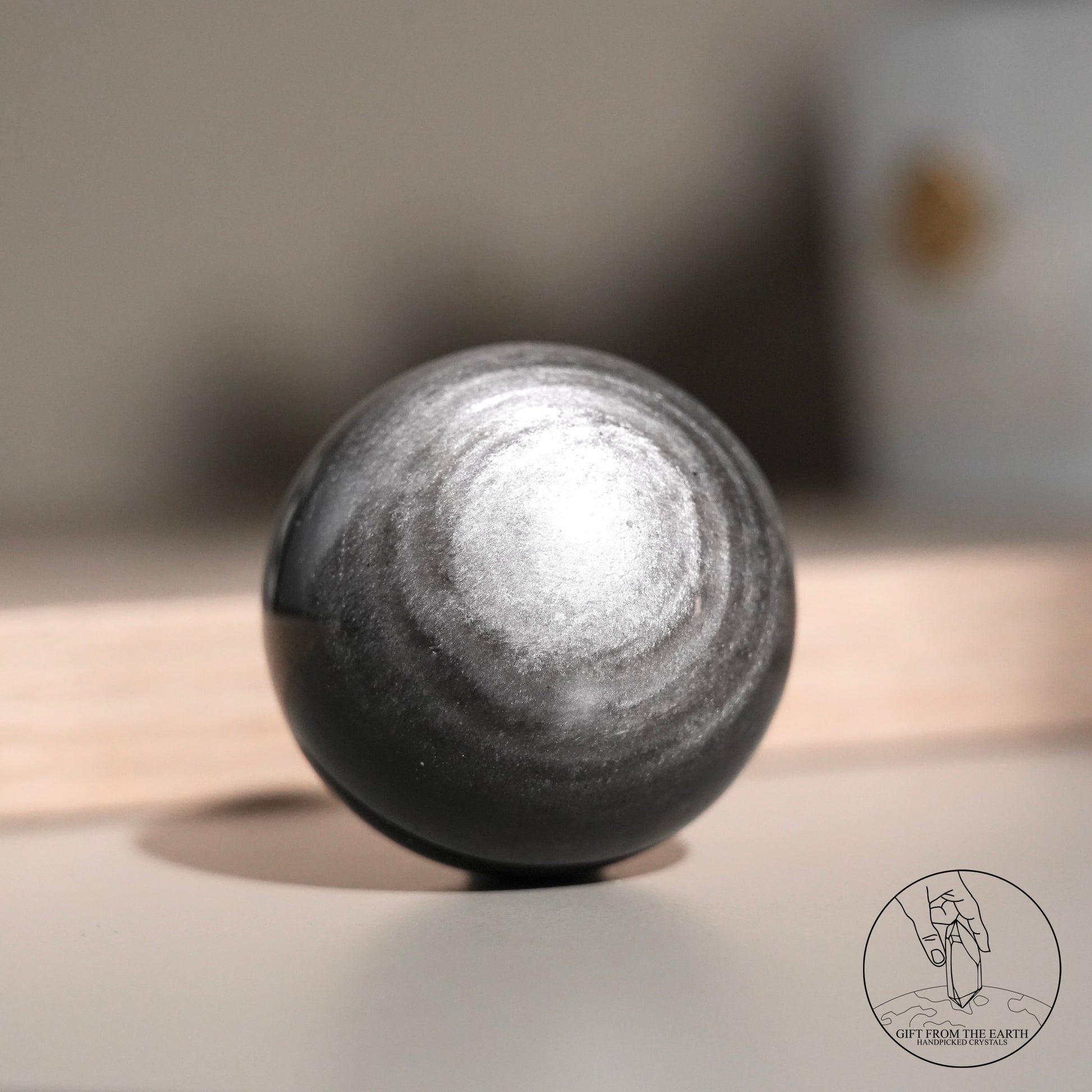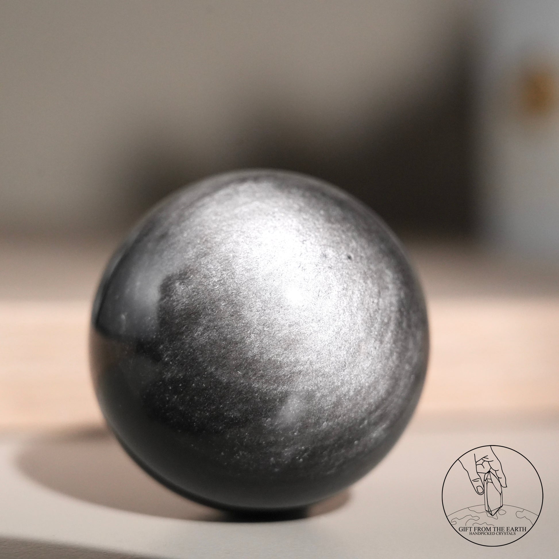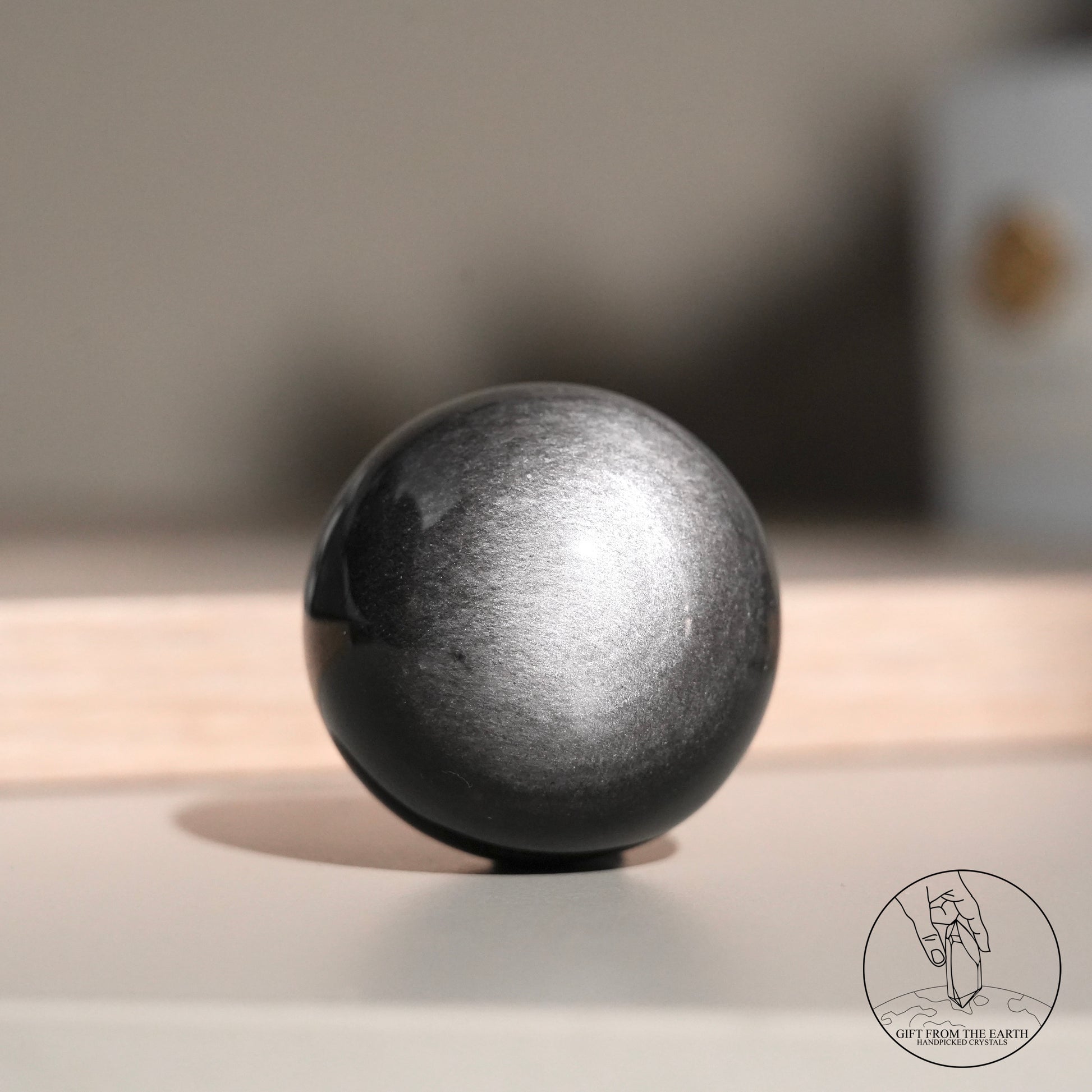 Silver sheen obsidian sphere
