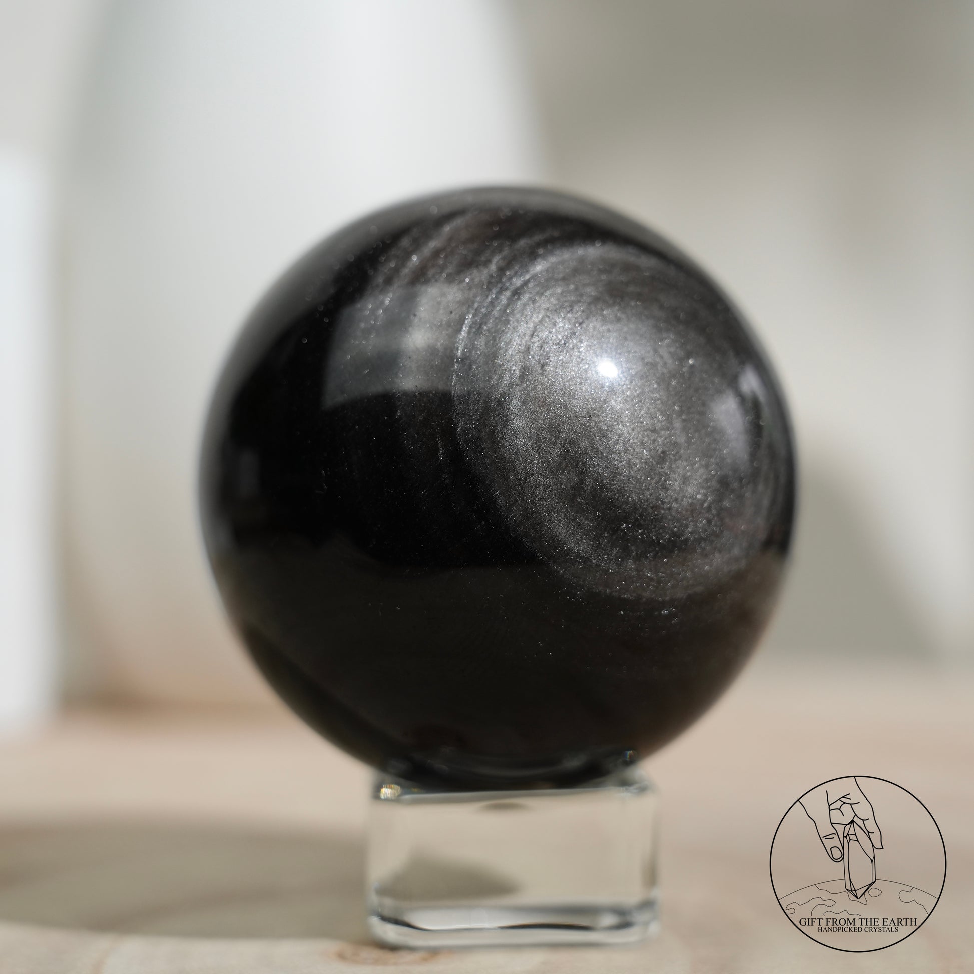 Silver sheen obsidian sphere
