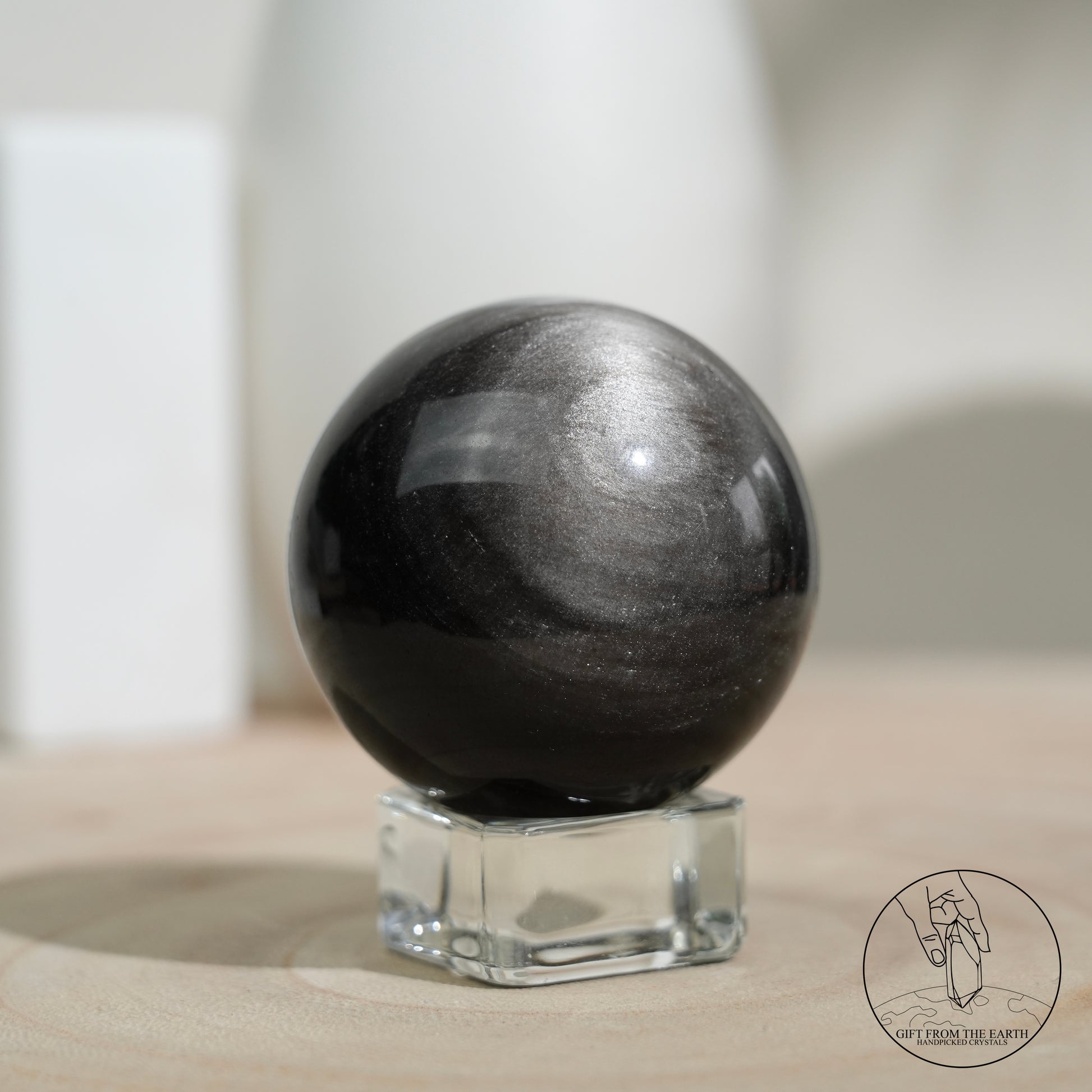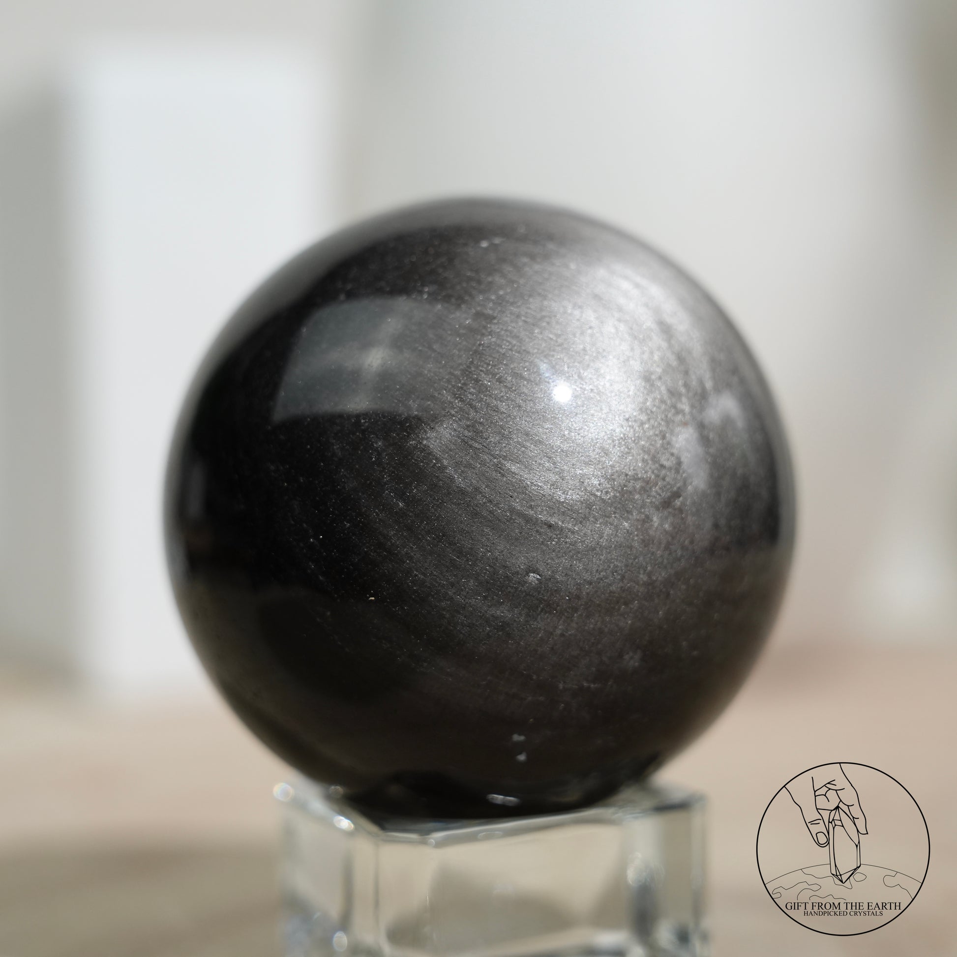 Silver sheen obsidian sphere