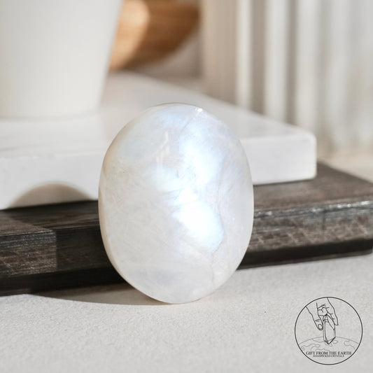 月亮石是一種擁有神秘光澤的晶石,其普遍的狀態呈現乳白色,配合光線照射時產生的「月光效應」(adularescence),折射出藍色或彩虹色的光芒,呈現獨特的外觀特徵。月亮石的名字來自於其閃爍的光澤,讓人聯想到月光的溫柔與神秘。在不同文化中,月亮石都被視為一種神聖的寶石,與月亮、女性力量、和情感有著深厚的聯繫。