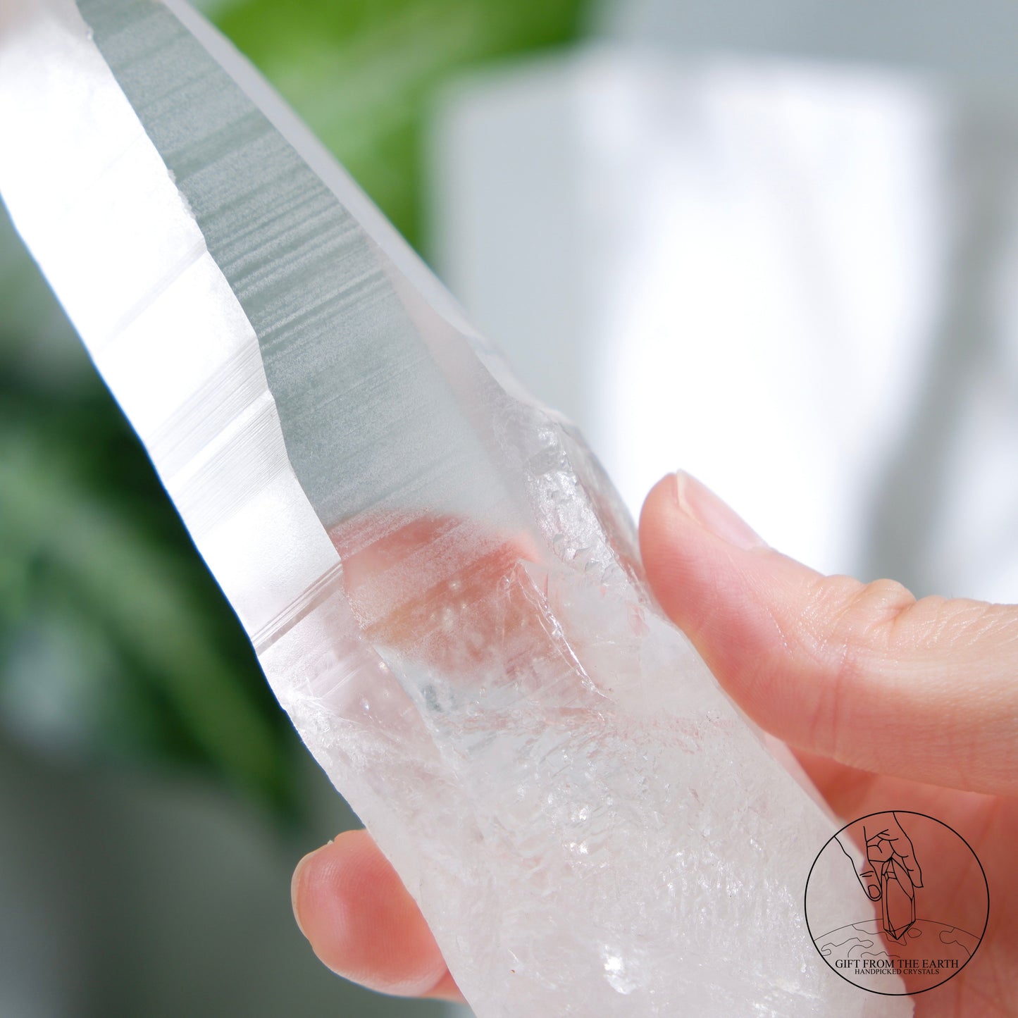 雷姆利亞水晶的最大特徵,是她必然會有至少一個特別長的平面,延伸到差不多尖端的位置。 也因為這個比較長的平面,其他的平面也會遷就而變得大小不一,也有可能比平常的水晶柱多了幾個接近尖端的小平面,所以尖端的位置也會呈現不規則的多邊形。 有些人會認為表面上的橫紋以及通透的晶體是雷姆利亞水晶的特徵,但其實這些特質也普遍於其他品種的白水晶,如喜馬拉雅白水晶,所以未必足夠去斷定。©️GFE