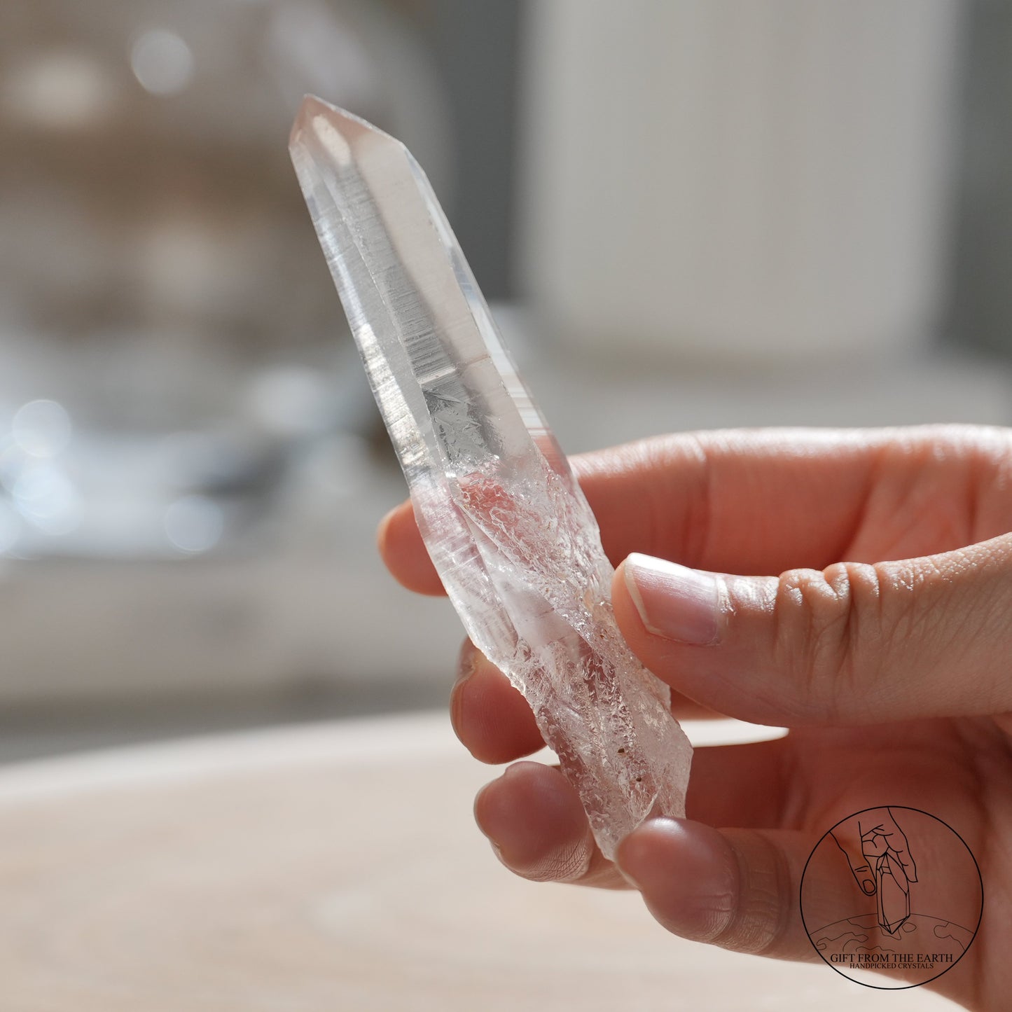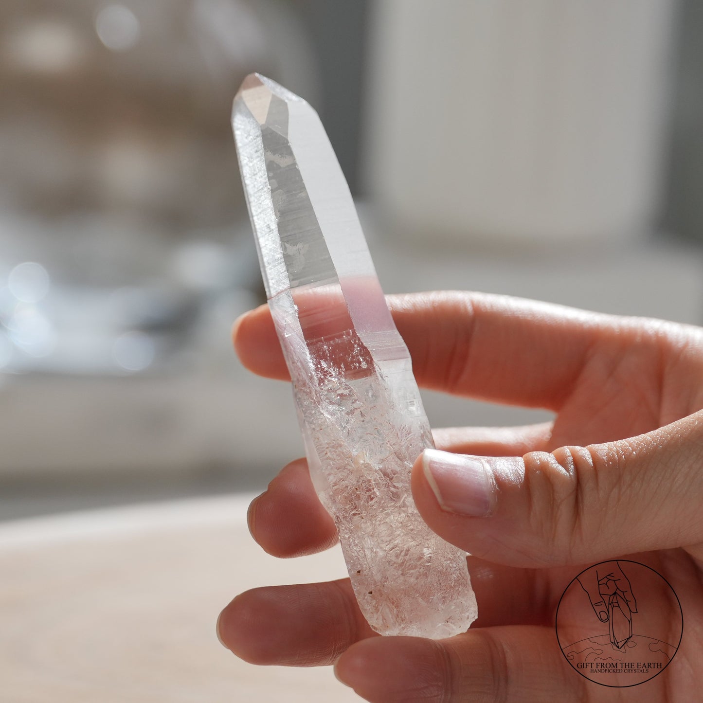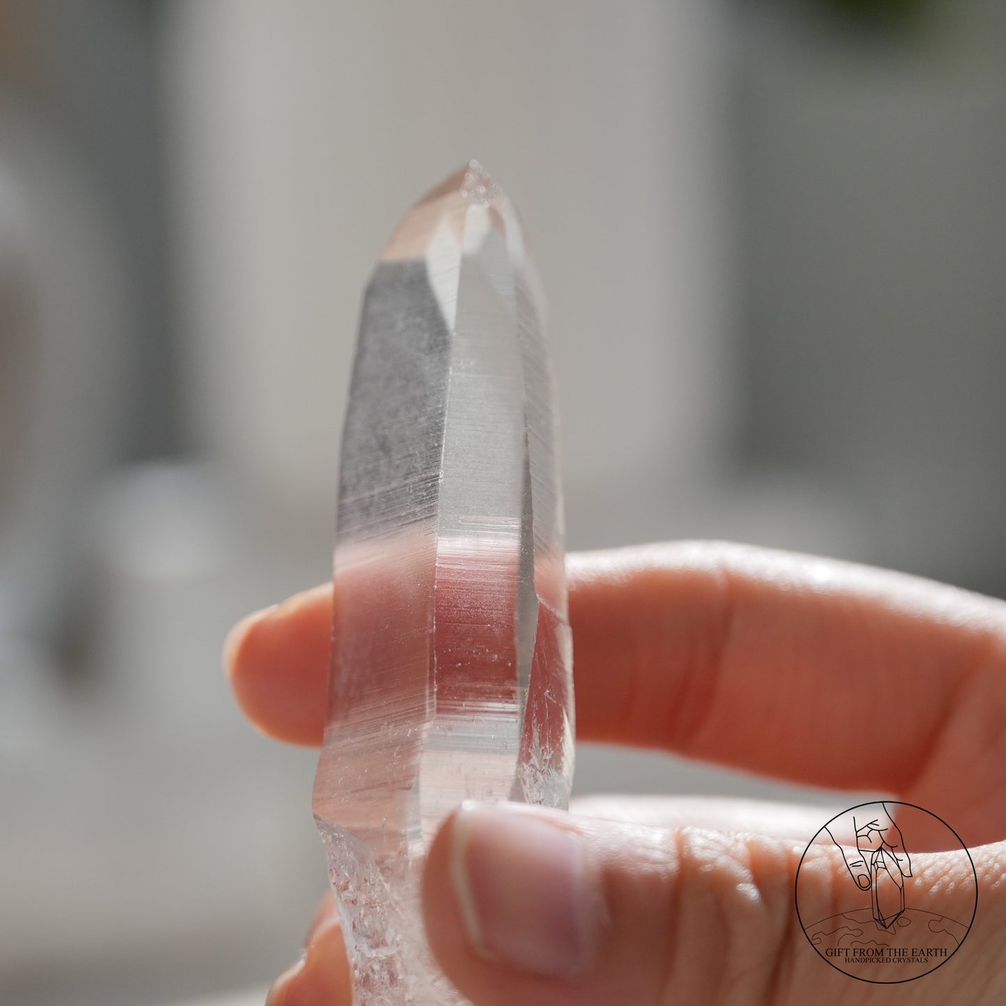 雷姆利亞水晶的最大特徵,是她必然會有至少一個特別長的平面,延伸到差不多尖端的位置。 也因為這個比較長的平面,其他的平面也會遷就而變得大小不一,也有可能比平常的水晶柱多了幾個接近尖端的小平面,所以尖端的位置也會呈現不規則的多邊形。 有些人會認為表面上的橫紋以及通透的晶體是雷姆利亞水晶的特徵,但其實這些特質也普遍於其他品種的白水晶,如喜馬拉雅白水晶,所以未必足夠去斷定。©️GFE