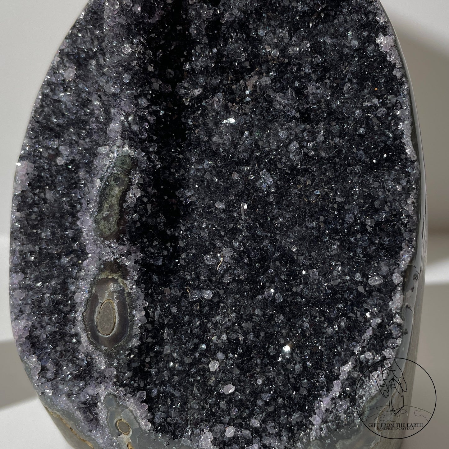 紫水晶對應頂輪及眉心輪,幫助開發智慧、加強記憶力、激發思維,對工作和學習很有幫助。 另外其使人鎮定的磁場,可以減低壓力和緊張的情緒,幫助入睡。紫水晶也有去除負能量,提高靈性,強化使用者及其他水晶氣場的能力。©️GFE
